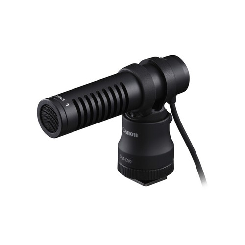 Designed to improve audio quality while recording video, the Canon DM-E100 Directional Microphone is a shoe-mounted, wired external mic with a 3.5mm plug. The directional design is suitable for a variety of recording applications and a windscreen is included to reduce wind noise when working in noisier and outdoor environments.