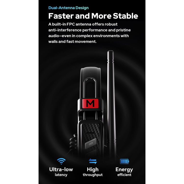 - Dual-antenna frequency hopping to prevent interference.