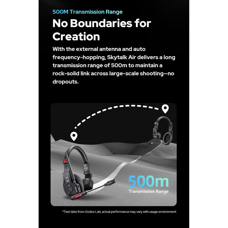 Operating on a stable 2.4 GHz digital frequency, the SkyTalk Air 5S boasts an impressive line-of-sight range of up to 500m (1640 feet). Its dual-antenna frequency hopping technology further enhances reliability by automatically switching channels to avoid interference in crowded RF areas.