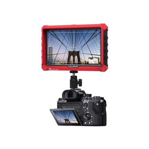 The A7S 7" Full HD Monitor with a red rubber case from Lilliput features an HDMI 1.4 input, making it suitable for UHD 4K filmmaking and photography. With a 16:10 aspect ratio and 1000:1 contrast ratio, the LCD panel displays Full HD images. The HDMI loop-through function allows you to output via HDMI to any other compatible device.
